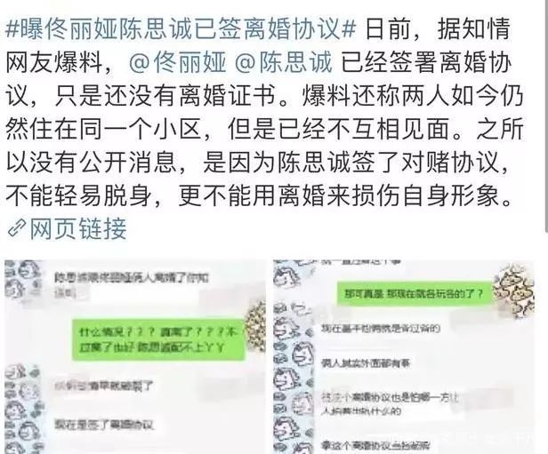 大概内容就是“偷偷摸摸告诉你,陈思成佟丽娅已经签署离婚协议了,真离了”。