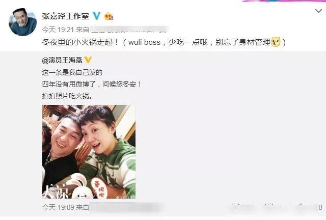 之后真正的王海燕还发微博辟谣,称自己是时刻4年才更新,顺便晒出和张嘉译的合影。